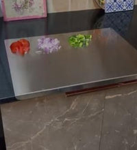 Product Description: Stainless Steel Chopping Board (35x31cm) Package Contains: It has 1 Piece of Material: Stainless Steel Color: As per availability Special features Non porous, Built in Groove Dimension: (35x31cm) Weight: 450gm